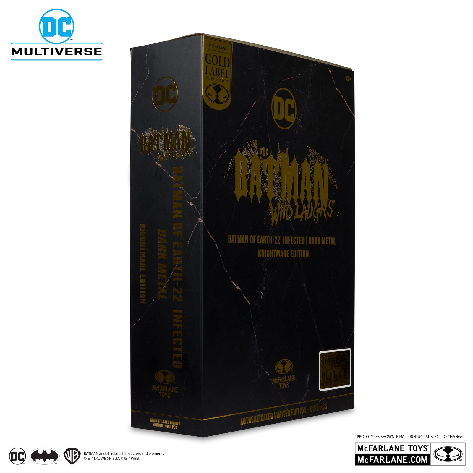 Introducing the Batman of Earth -22™, corrupted by the malevolent influence of The Joker’s™ nanotoxins, transforming into the nightmarish entity known as The Batman Who Laughs!™ From the depths of the Dark Multiverse to the forefront of chaos and despair, this incredibly detailed 7” scale figure from the DC MULTIVERSE™ by McFarlane Toys™ captures the essence of this twisted incarnation of the Dark Knight like never before. Witness the fusion of Batman’s perfect mind with the warped psyche of The Joker, resulting in a being driven by ultra-violence, chaos, and utter darkness.