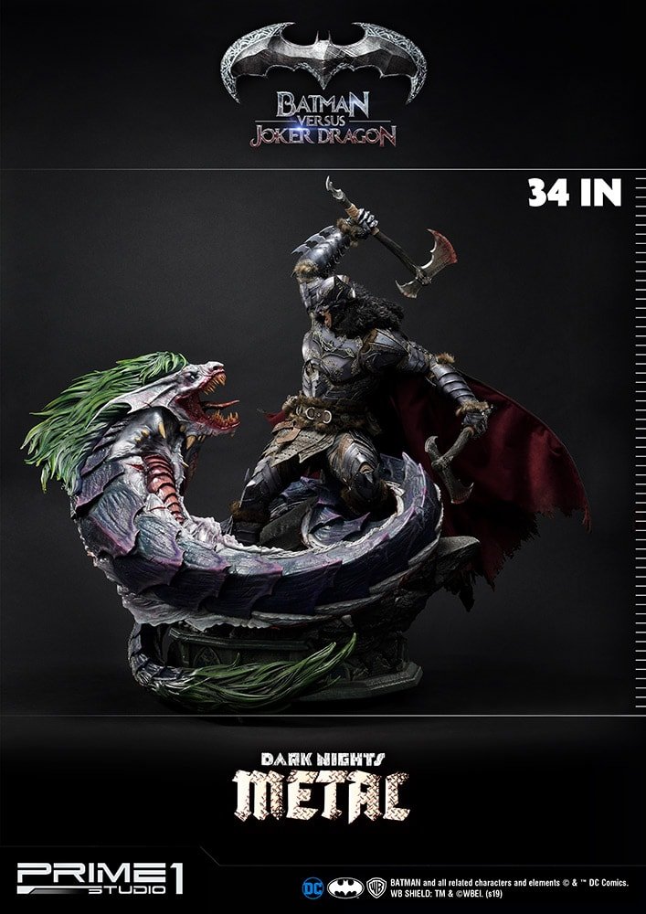The Batman Versus Joker Dragon Statue stands approximately 34 inches tall and it is a must have for all DC Comics Dark Nights: Metal fans! A great piece to add in your collection with Batman Who Laughs from the same series.