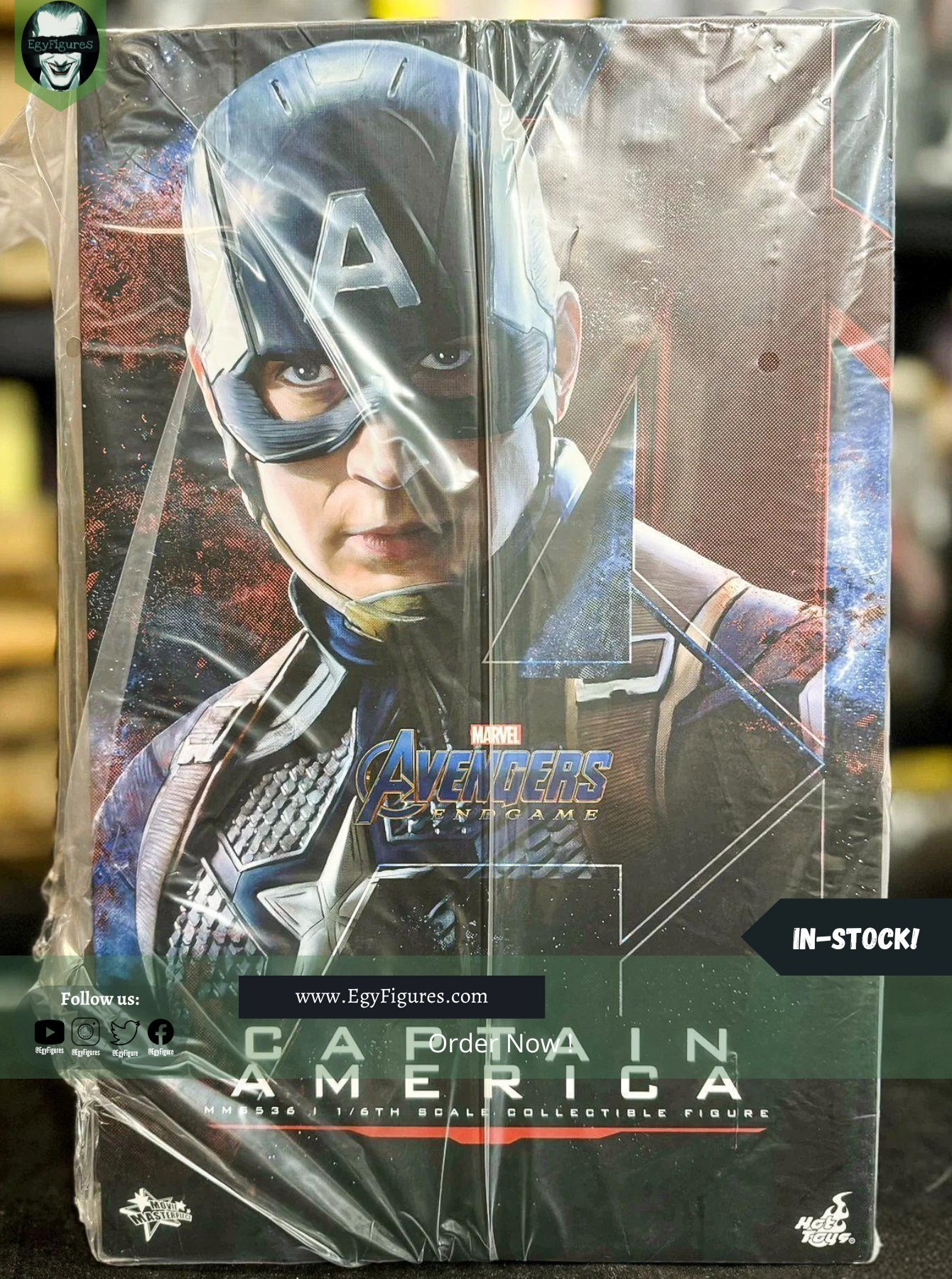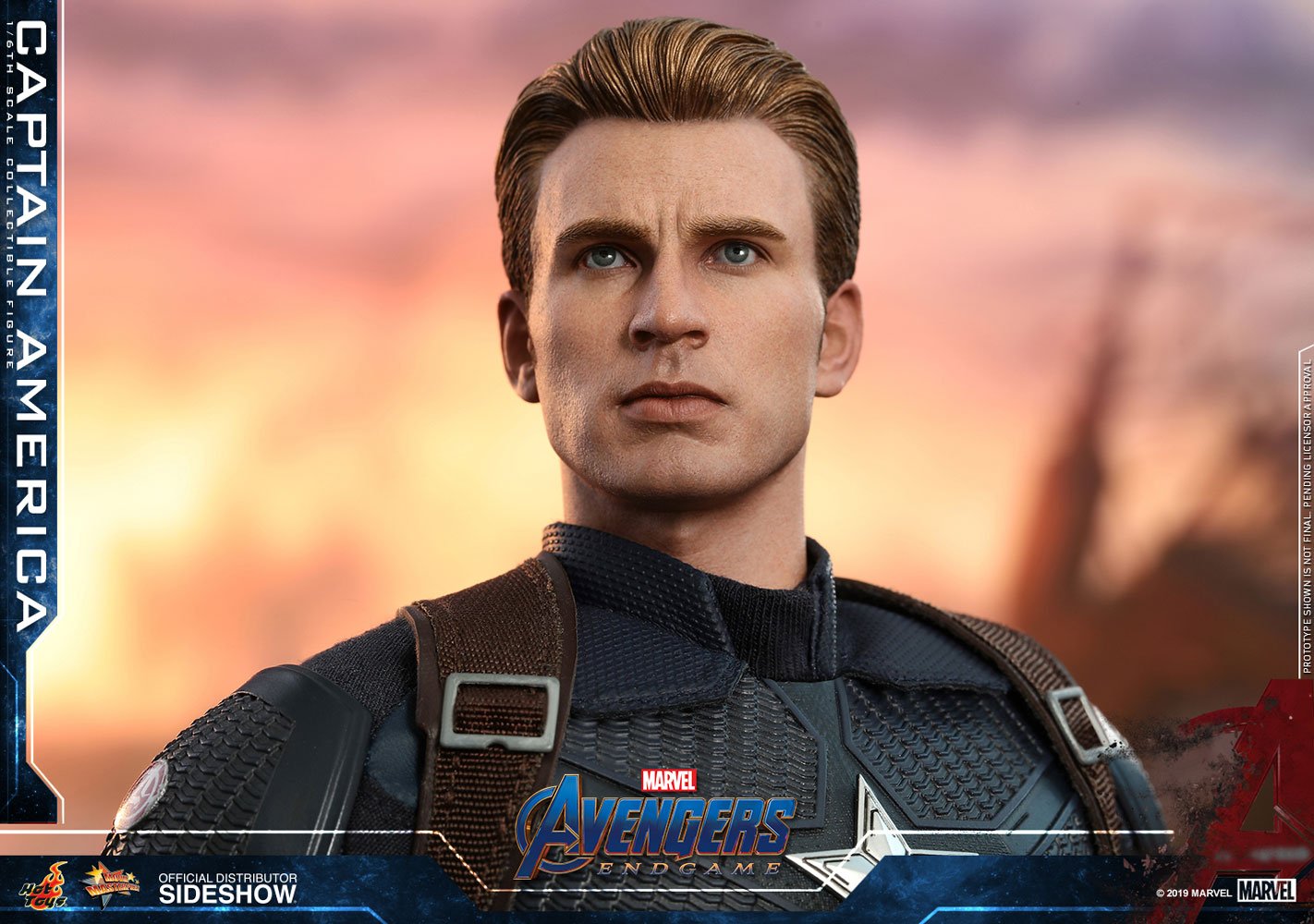 The highly-accurate Captain America collectible figure is expertly crafted based on the appearance of Chris Evans as Captain America/Steve Rogers from Avengers: Endgame. Featuring a newly painted helmeted head sculpt with three interchangeable lower faces capturing Chris Evan’s facial expressions and an un-helmeted head sculpt, a muscular body which naturally portrays Captain America’s muscularly toned body, a meticulously tailored outfit with a star emblem on the chest, Cap’s star-spangled shield, a delicate compass, a signature helmet and a specially designed movie-themed figure stand.