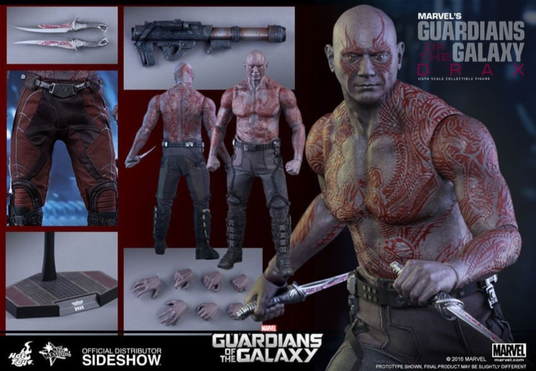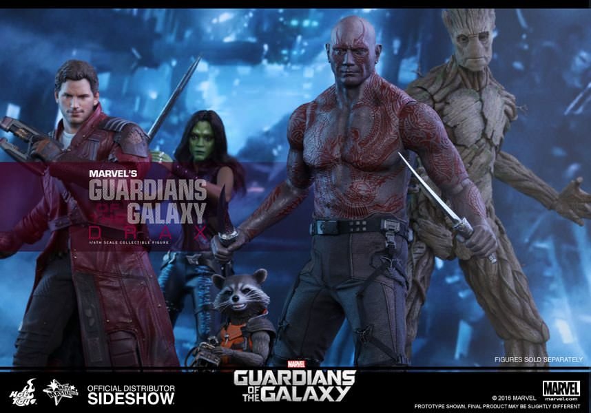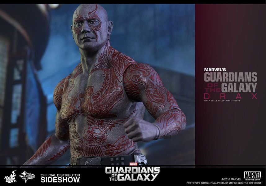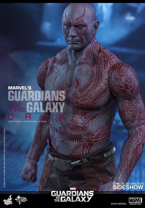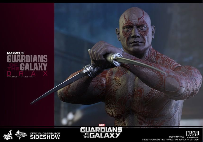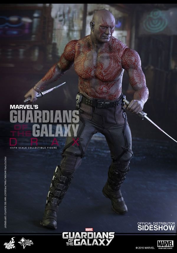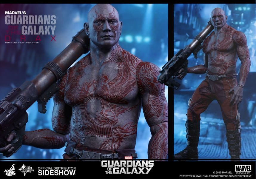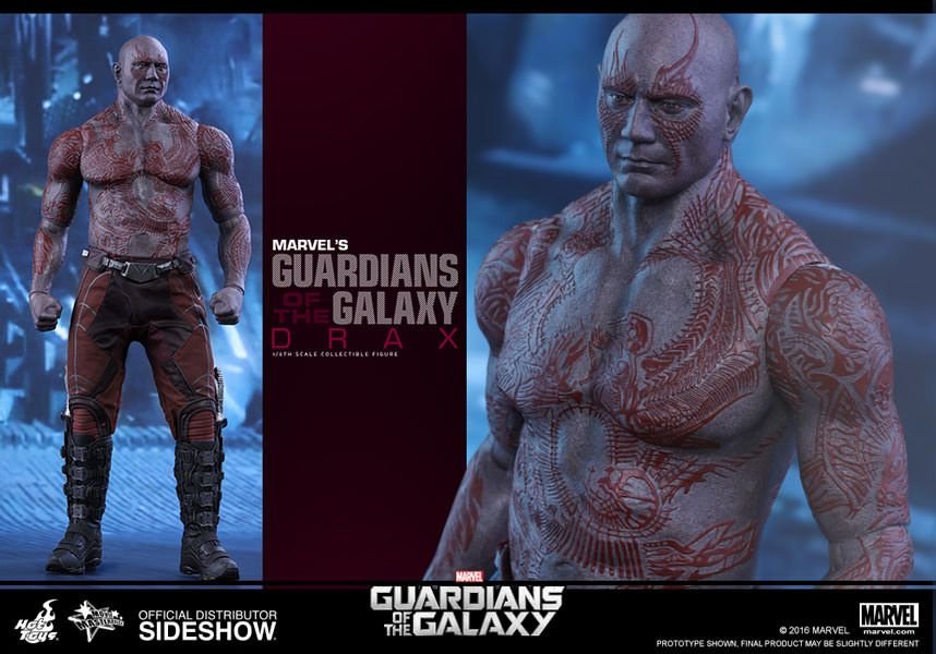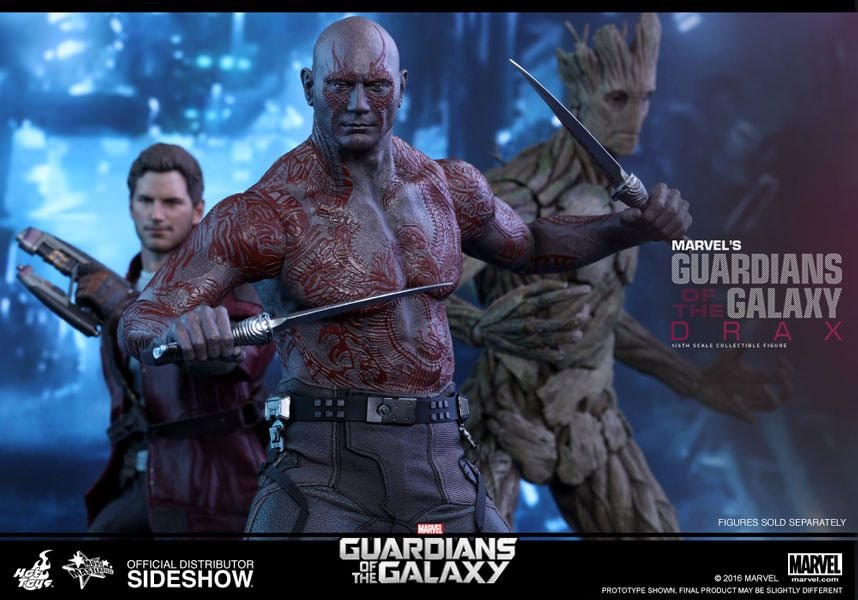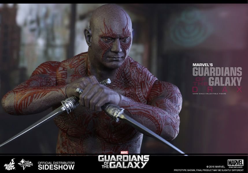 Sideshow and Hot Toys officially present the sixth scale collectible figure of Drax the Destroyer for fans to complete their Guardians of the Galaxy team. The movie-accurate Drax the Destroyer collectible figure is specially crafted based on the image of Dave Bautista in the movie, featuring a newly developed head sculpt, a newly developed muscular body with detailed sculpture of the character’s iconic tattoos, two styles of interchangeable pants, two blades, a rocket launcher, and a Guardians of the Galaxy themed figure stand.