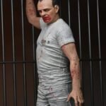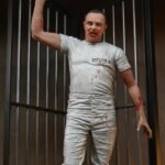 Add the iconic prison escape scene from The Silence of the Lambs to your horror collection! This chilling figure of Dr. Hannibal Lecter in his blood-spattered, white prison uniform captures the moment he takes murderous revenge on his captors.