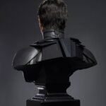 The Masked Batman 1/1 Statue rightfully stands upon a base adorned with the iconic Batman logo, adding a subtle touch of Gotham’s gritty sophistication to this exceptional collectible. The base not only enhances the statue’s visual grandeur but also pays homage to Batman’s enduring legacy in a city plagued by darkness. The Christian Bale Life-Size Bust’s base also features a prominent Batman logo at the front.