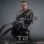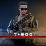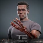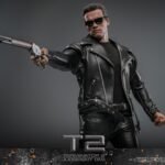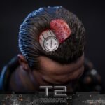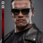The highly-accurate collectible action figure features a newly developed head sculpt with separate rolling eyeballs and two styles of scalp. The detachable scalp allows collectors to take out T-800’s CPU from the storage device from the head. The skillfully tailored outfit is highlighted by the genuine leather jacket and pants, along with an additional Endoskeleton revealing left arm. It comes with weapons that include a machine gun, a shotgun, a pistol, a grenade launcher, a set of bullets, and an ammunition belt, as well as accessories such as a pair of sunglasses, a duffle bag, a gift box with roses and a themed figure base.