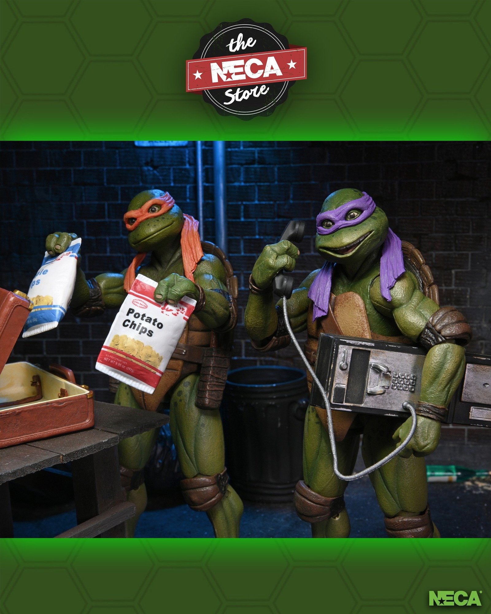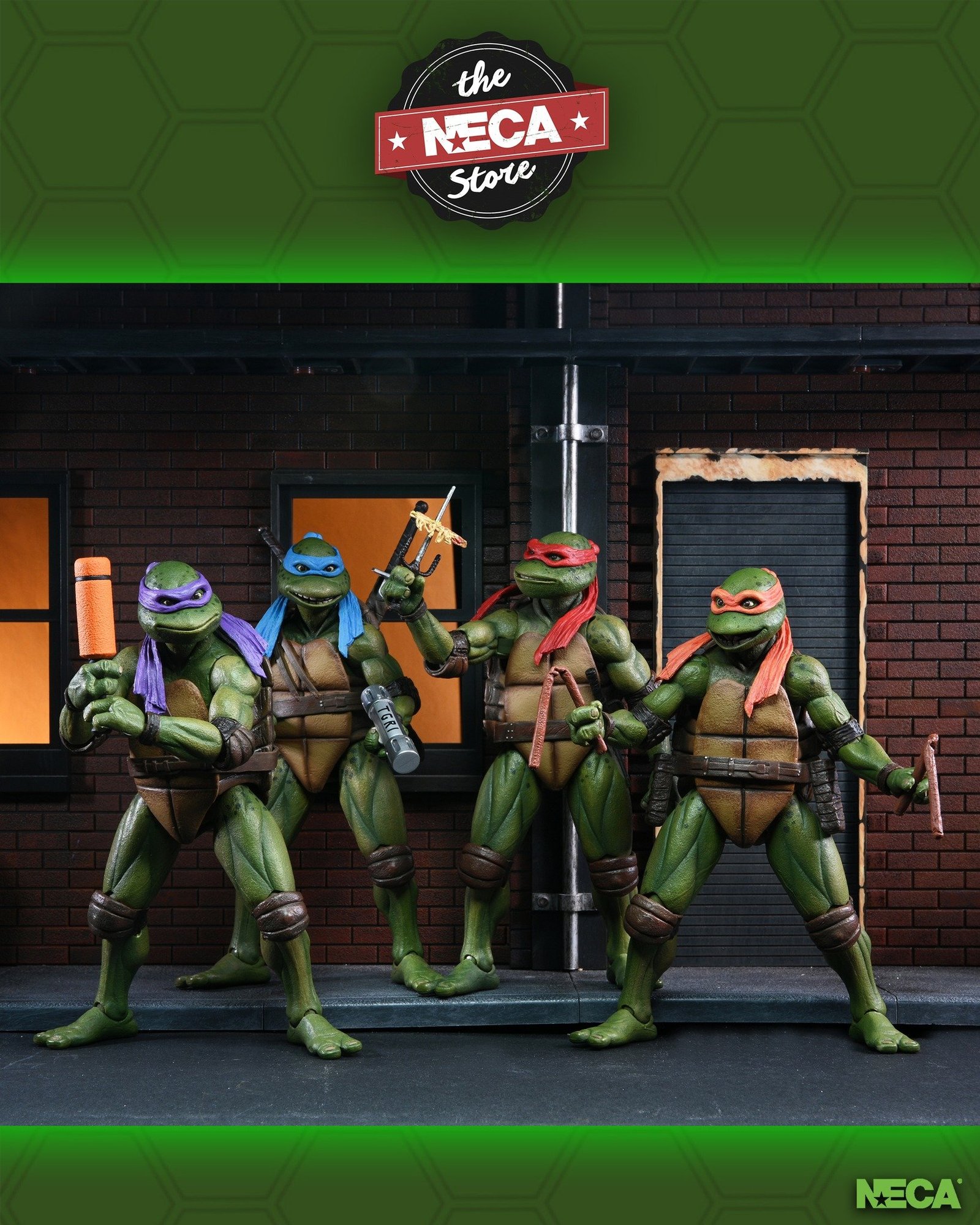 Those heroes in a half-shell are back in an all-new movie adventure! Help these totally tubular dudes uncover “The Secret of the Ooze” before the villainous Shredder creates an army of evil mutants. Get all four Turtle brothers in this Teenage Mutant Ninja Turtles 2: Secret of the Ooze action figure 4-pack that features collectible packaging styled after the original VHS release! Includes four 7” scale action figures, plus sais, katanas, bo staff, nunchucks, alternate hands, pizza slices, half-eaten pizza slices, pizza box, fire extinguisher, ooze canisters, combat cold cuts, and more. Go ninja, go ninja, GO!