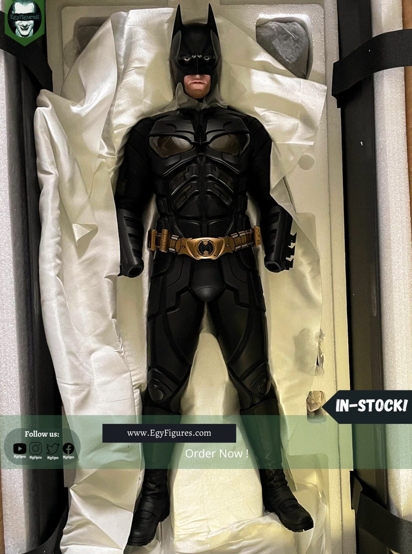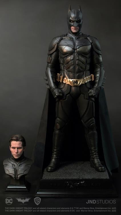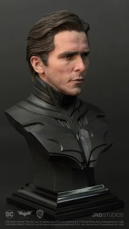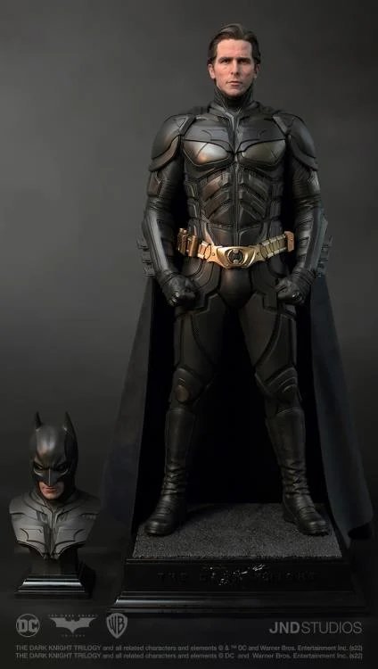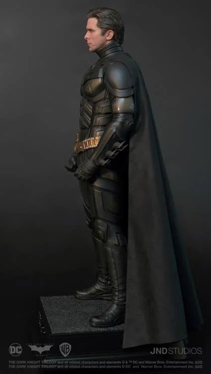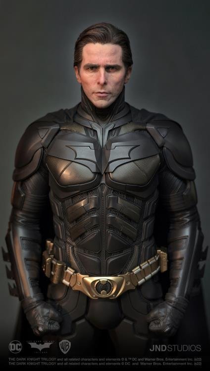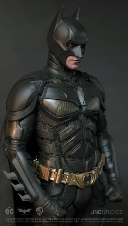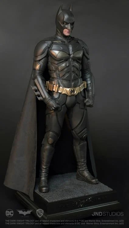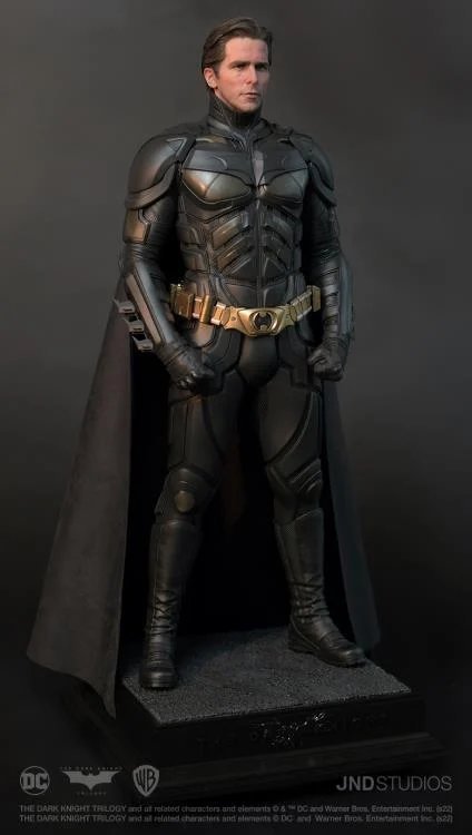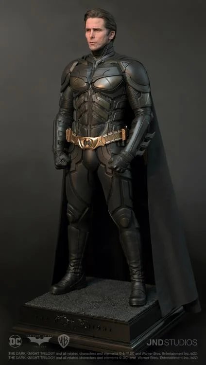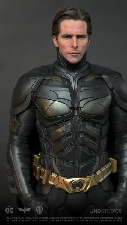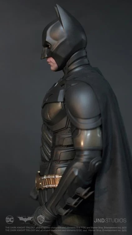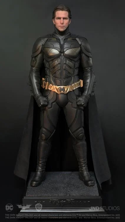 JND Studios presents the 1/3 scale hyperreal statue of Batman as he appeared in the 2012 film, The Dark Knight Rises. Played by Christian Bale, this statue features his unmistakable likeness, and his modern-armor-like Batsuit has been recreated with impeccable detail. This statue also comes with a JND base and an additional head sculpt to display with or without the iconic Batman mask.