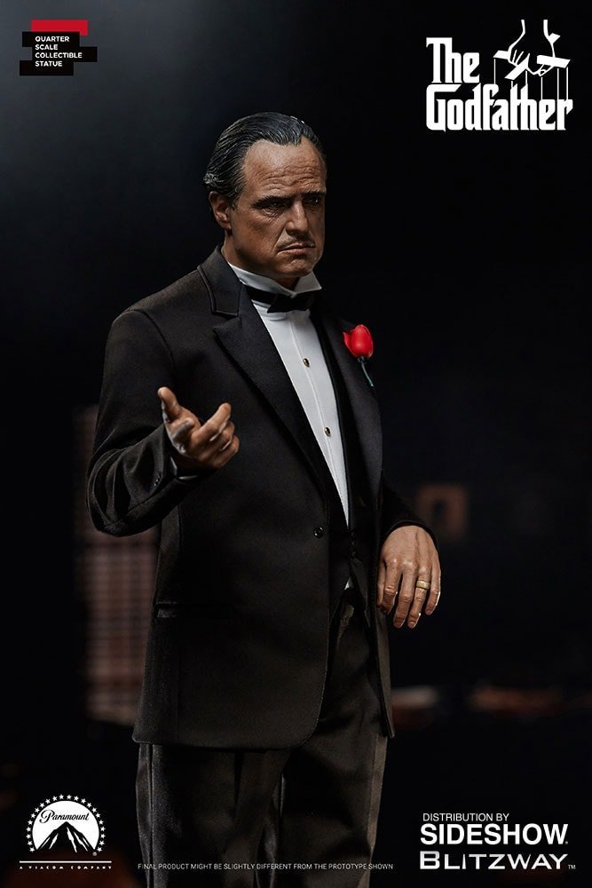 Sideshow and Blitzway are very excited to officially present a Superb 1:4 Scale Statue of Vito Corleone with accurate likeness of Marlon Brando from the film.